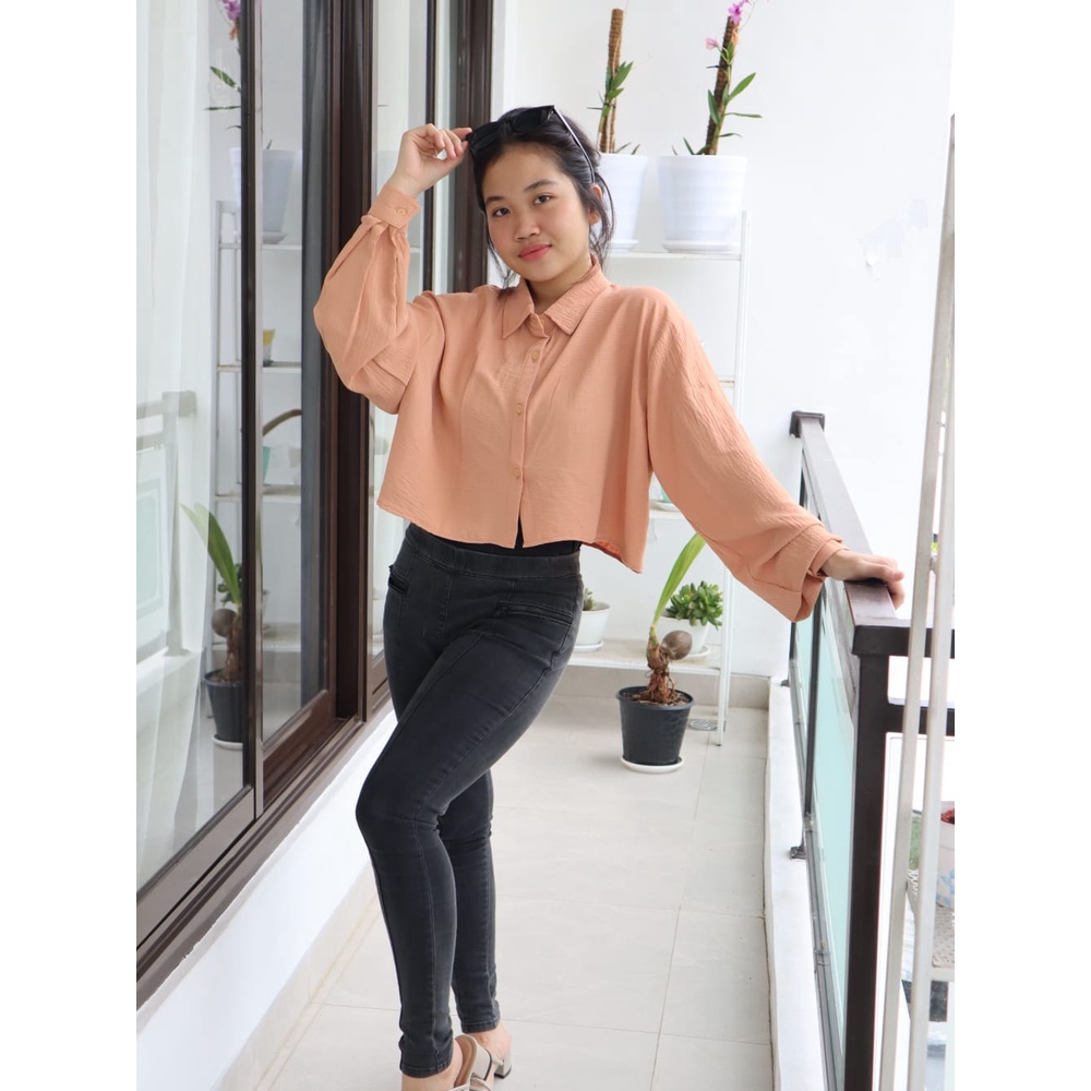 Jual Cod Anasha Hanin Crop Top Baju Kekinian Kemeja Crinkle Baju Pendek Kemeja Pendek Baju Murah Shopee Indonesia